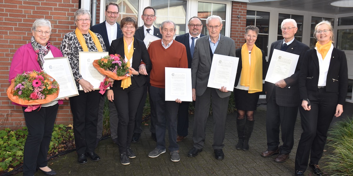 Neu aufgenommen wurden die Sängerinnen Claudia Ketteler und Vera Kloster (krankheitsbedingt abwesend). Für 25 Jahre Singen im Chor wurde unser Kassierer Norbert Schulze Mengering geehrt. Für gleich 50 Jahre wurde unserer Notenwartin Maria Elskamp und Monika Stenert geehrt. Und ganz besonders freuten wir uns das drei Gründungsmitglieder dem Chor seit 65 Jahren die Treue hielten. Heinrich und Paul Rensing sowie Johannes Schlütter wurden für 65 Jahre mit einer Urkunde geehrt.